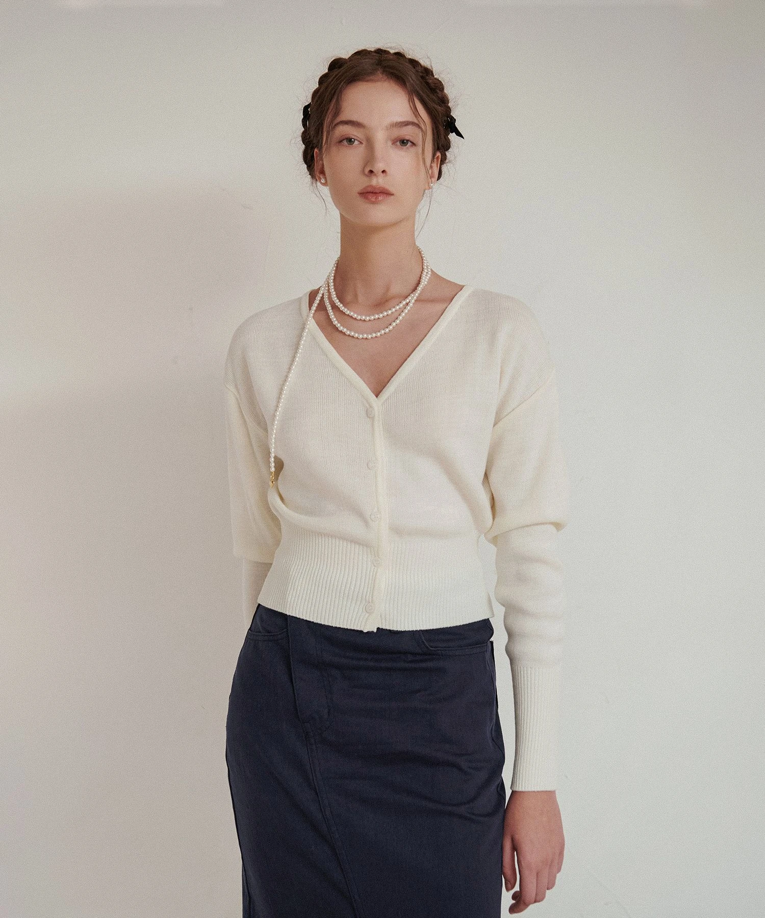 - Cardigan Closure: Full Button-Front (5–6 buttons, depending on size)